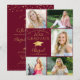 Marrom elegante ou burgundy e convite de festa de formatura de ouro (ou outra cor de fundo) com uma colagem fotográfica de 5 fotos na frente, um falso boné de formatura metálico de folha de ouro ou placa-mãe, minúsculo confetti de estrela de ouro, um elegante FORMANDO de tipografia caligráfica com título 20XX e um roteiro moderno, manuscrito, para o nome do formando. A cor de fundo editável pode ser alterada para uma cor de escola, cor favorita ou uma cor que coordene suas fotos. ASSISTÊNCIA: para obter ajuda com a modificação ou personalização do design, alteração de cor, transferência do design para outro produto ou você gostaria de coordenar itens, entre em contato com o designer ANTES DE ENCOMENDAR através da guia MENSAGEM de bate-papo Zazzle ou envie um email para makeitaboutyoustore@gmail.com.