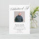 Este convite elegante da Celebração da Vida apresenta um fundo branco clássico, uma fotografia quadrada de solteiro, e uma tipografia simples, mas elegante, em branco. A parte traseira é vazio, de modo que, se desejar, você pode adicionar outra foto ou texto adicional - basta clicar em "editar com a ferramenta design".