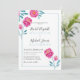 Este convite de casamento elegante e moderno é perfeito para as estações de verão e primavera. Ele apresenta flores de peônia pintadas à mão em tons de rosa, fúcsia e azul-acinzentado em um degradê de aquarela, sobre uma simples borda azul-acinzentada e um fundo branco simples. É único, clássico, bonito e chique; o design perfeito para impressionar seus convidados, amigos e familiares.