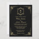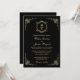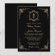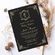 Convite Elegante Monograma Clássico em Preto e Dourado Des