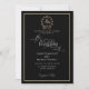 Convite Elegante Monograma de Coroa Preto e Dourado em Fot