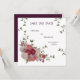 Convite Elegante Monograma Floral Borgonha Salve A Data