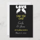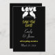 Convite Elegante negro Salve a data com pássaros apaixonad