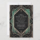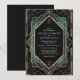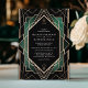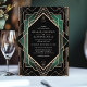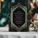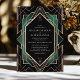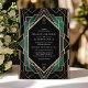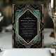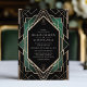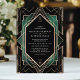 Convide seus convidados para uma celebração sofisticada com este elegante convite de casamento Art Déco, apresentando um deslumbrante padrão geométrico dourado em um fundo preto rico com sotaques luxuosos em esmeralda verde. O design atemporal e o charme vintage tornam-no perfeito para um casamento com um toque de glamour dos anos 1920. Ideal para casais que apreciam estilo clássico e luxo, este convite captura lindamente a essência da era Art Déco.