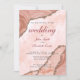 Um convite de casamento moderno e sofisticado em creme bege ágata com um toque de brilho rosa suave dourado e uma caligrafia elegante. Personalize com os detalhes do seu casamento.