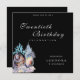 Um belo e elegante convite de aniversário para adultos em preto e branco com conchas e corais pintados à mão numa praia arenosa. Personalizável para qualquer marco de aniversário