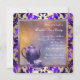 Convite de chá de noiva roxo e dourado apresenta um elegante fundo de aquarela roxo e dourado com um elegante bule de chá e xícara de porcelana roxa com flores de orquídea roxas e douradas. Este convite de chá roxo e dourado funciona bem para um convite de chá da tarde, convite de chá de noiva ou qualquer outra festa ou evento especial e é facilmente personalizado adicionando os detalhes do seu evento, estilo de fonte, tamanho e cor da fonte e texto. Por favor, note que todos os cartões e convites que você encontrará na Zazzle são gráficos impressos sem joias, laços, relevos, ou peças ou partes adicionais.