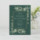 Com delicadas folhas de verde água e uma moldura dourada em um fundo esmeralda, este convite de casamento botânico elegante pode ser personalizado com sua foto e informações especiais do dia do casamento. Criado por Thisisnotme