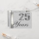 Aqui está um convite elegante com um grande gráfico prateado "25" com texto "Anos" em grande roteiro formal na frente. Personalize facilmente o belo texto de script correspondente no verso com nomes, data e outras informações. Excelente Salve a data dos convites para o grande aniversário de prata ou aniversário de 25! Um belo quadro prateado na frente e no verso do convite e um fundo de cinza de luz adiciona a este clássico convite.