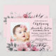 Um convite de batismo fotográfico cor-de-rosa elegante que você pode personalizar e enviar aos seus convidados para a celebração da cerimônia de batismo. Todo o texto é definido usando tipografia popular. Um padrão floral complementa a frente e o verso do convite em um fundo cor-de-rosa suave. Aproveite!