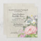 Convite Elegante Peônia Rosa Flora Vegetal Madeira Rústica