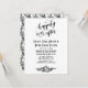 Esses convites únicos e elegantes certamente farão uma declaração quando você convidar seus convidados para celebrar seu casamento. Uma fonte de letra cursiva moderna e giratória e linda lê "feliz para sempre" no topo. Abaixo disso, seus detalhes pessoais são apresentados em uma fonte art déco em letras maiúsculas. Isso pode ser alterado para qualquer fonte que você preferir, caso deseje algo diferente. A redação no cartão é voltada para um evento após o grande dia, no entanto, o texto pode ser facilmente modificado para atender às suas necessidades. Uma única peônia em aquarela em tons simples de preto e branco foi colocada na parte inferior. Para complementar a aparência ousada, a parte de trás foi coberta com um padrão preto e branco de peônias pintadas em aquarela. Isso também pode ser alterado. Na verdade, todas as camadas foram adicionadas separadamente e deixadas desbloqueadas para dar a você o máximo de controle de design que desejar. Mas, por favor, não hesite em entrar em contato se tiver solicitações especiais para peças correspondentes ou se