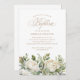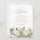 Elegante Peony Floral Script Baptism Invitation apresenta uma bela ilustração de peões brancos e verde.