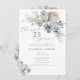 Convite Elegante Pó Azul Floral Aniversário de 25 Anos de