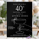 Fundo preto minimalista com arte de linha estilosa de uma mão segurando uma taça de champanhe. Uma escolha perfeita para celebrações de marcos sofisticados, combinando elegância com design moderno.