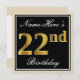Convite Elegante, Preto, Faux Dourado 22º Aniversário + No