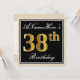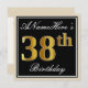 Convite Elegante, Preto, Faux Dourado 38º Aniversário + No