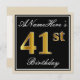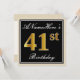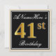 Este simples e bolsa mensageifesta de aniversario elegante de convite apresenta uma mensagem personalizada, como "ANameHere's 41rua Birthday" (com as "41ruas" com aparência falsa/imitação de cor dourada), dentro de uma área quadrada de cor preta com um contorno simples de fronteira. O nome está em um texto elegante, de cor branca, semelhante a script, e pode ser personalizado. A parte traseira apresenta detalhes personalizados do convite. Um convite de aniversário como este poderia talvez ser usado ao convidar pessoas para uma festa de aniversário em prisão preventiva para alguém que comemora seu quarenta primeiro aniversário. [~Z0000224]