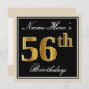 Convite Elegante, Preto, Faux Dourado 56º Aniversário + No