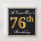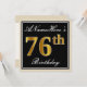 Convite Elegante, Preto, Faux Dourado 76º Aniversário + No