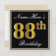 Convite Elegante, Preto, Faux Dourado 88º Aniversário + No