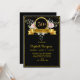 Convite Elegante Preto Floral Dourado 50º Aniversário