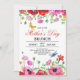 Convite para Dia de as mães de Chic Primavera Wildflower Elegante Brunch. Bela celebração com a mãe com flores de rosa e vermelho, borboletas e libélulas. Personalize este modelo com suas informações. Fundo cor-de-rosa no verso. A cor é personalizável.