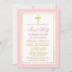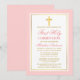Elegante Blush Rosa e Dourado Primeiro Convite Comunitário com Cruz.