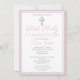 Celebre este marco especial com um belo e moderno convite da Primeira Comunhão. Este design apresenta uma simples cruz prateada contra um fundo branco com uma borda cor-de-rosa. Design o convite da Primeira Comunhão da menina perfeita personalizando a cor, a fonte, a data e todos os detalhes do texto.