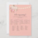 Aproveite este elegante jogo floral de outono, chá de fraldas de menina, Quem é a minha Mamãe? Luzes de cordas na frente com abóbora pequena e flores sob abóbora. Pinks, corais e florais amarelos com fundo rosa pincelado. Modelos fornecidas atrás.