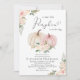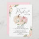 Um convite para chás elegante para uma menina que apresenta "uma doce abóbora está a caminho" na tipografia moderna das cinzas moles e um roteiro com um inchaço cardíaco e aquarelas de abóboras rosa e creme e buquês florais.