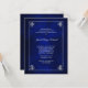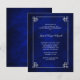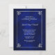 Este é um convite de Bodas de Prata elegante e sofisticado para qualquer época do ano. Um requintado quadro geométrico prateado com decoração nos cantos envolve o seu texto, que também é prateado. As imagens e o texto estão sobre um fundo gradiente azul real que quase brilha! O verso do convite tem o mesmo fundo azul. Muito elegante!
