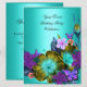 Elegante de Festa de aniversário de Convite Qualquer Festa de Festa de Teal Blue Roxo Flores Douradas Florais