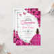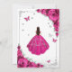 O convite para comemoração da Quinceanera, cor-de-rosa, prata-rosa e branca. Possui uma morena em vestidos de capa de bola, fonte de script, borboletas prateadas, rosas rosa quente e tiara. Perfeito para uma elegante celebração de glam estilo princesa. Personalize com seus próprios detalhes. Impressos convites Zazzle ou modelo de impressão digital instantânea para download.