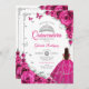 Convite Elegante Quic Fuchsia Rosas Rosa Quinceanera Flora