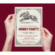 "Experimente o charme de ontem com nosso convite de festas Derby. Elegantemente desenhado para uma celebração refinada. Personalizável para corresponder perfeitamente ao estilo e à ambição do seu evento exclusivo.