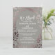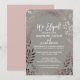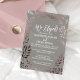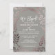 Este convite de recepção de casamento com ouro rosa e cinza é perfeito para uma festa de casamento elegante. O design apresenta uma moldura de folhas cor de rosa deslumbrante em um fundo cinza escuro e é combinado com uma fonte cursiva deslumbrante. Cartões de RSVP são vendidos separadamente.