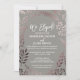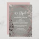 Este convite de recepção de casamento com rosa dourado e cinza é perfeito para uma festa de casamento elegante. O design apresenta uma moldura floral rosa em um fundo cinza escuro e é combinado com uma fonte cursiva deslumbrante. Os cartões de RSVP são vendidos separadamente.