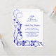 © Socialite Designs. Convite de casamento de recepção com espirais e flores azul real elegante pronto para ser personalizado com suas próprias informações. Escolha entre vários tipos de papel de convite. Precisa de AJUDA com a personalização? Por favor, não hesite em entrar em contato comigo com seus requisitos.