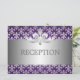 Elegante design de "Recepção" de casamento com romântico motivo Fleur De Lis Roxo, nomes personalizados e texto de data. Impressione sua família e amigos com este design moderno e sofisticado. Totalmente personalizável! Fácil de usar e fácil de personalizar.