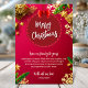 Celebrar os feriados com este elegante convite vermelho e dourado Feliz Natal, com ornamentos festivos, galhos de pinheiro, flocos de neve ouro e uma saudação sazonal quente. Perfeito para encontros familiares, jantas de férias, festas de escritório ou comemorações festivas, este design dá um tom alegre e acolhedor para o seu evento.