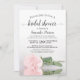 Este belo chá de panela mostra uma foto de uma rosa-rosa-pia, de solteiro longo, estendida em seu lado refletindo em uma piscina de água com ondas e ondulações. O título elegante da caligrafia de script empresta classe e estilo. Inclui informações sobre o registro do chá e do presente. Uma forma perfeita de celebrar a noiva.