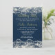 Convite Elegante Renda Creme e Pérolas em Azul de Aniversá