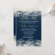 Convite de festa de aniversário. Um design abstrato elegante e sofisticado com renda cor creme e pérolas feitas com círculos e bolhas. O fundo é azul escuro com quadrados desbotados ao lado. Design bonito e delicado.