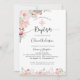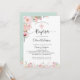 Convite Elegante Rosa de batismo Dourado, Mint Floral Conv