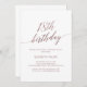 Este elegante convite de 18 anos para a caligrafia em ouro de rosa é perfeito para uma simples festa de aniversário. A design cor-de-rosa-pincelada apresenta uma carta minimalista decorada com tipografia da folha de ouro rosa-falso romântica e caprichosa. Nota: Este design não apresenta folha de ouro rosa real. É um gráfico de alta qualidade feito para se parecer com folha de ouro rosa.