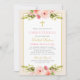 Convite Elegante Rosa Dourado Floral Batizado de Menina