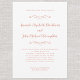 Convites de casamento elegantes e simples em lindo rosa dourado e branco são clássicos, formais e atemporais. O design sem bordas permite que você escolha facilmente a forma do papel para o seu convite para convidar os convidados para a sua celebração. Dois floreios decorativos, cada um contendo um único coração, envolvem delicadamente o nome da noiva e do noivo. Uma única linha de texto no topo lê "juntos com seus pais", mas pode ser editada para atender às suas necessidades. Outras configurações de texto estão disponíveis neste conjunto de convites. Para obter resultados ótimos, siga o exemplo do modelo, capitalizando as palavras como no exemplo.