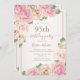 Convide seus hóspedes em estilo com este elegante convite de aniversário floral 95º com cor d'água, elegante, pintado manualmente, rosa-pincel, esticado, e rosas rosa poeirentos com verde. Personalize com todos os detalhes do seu partido em uma caligrafia moderna de script rosa gold. Desenhada por Susan Coffey.