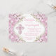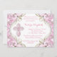 Convite Elegante rosa e Dourada Cruz Primeira Comunhão